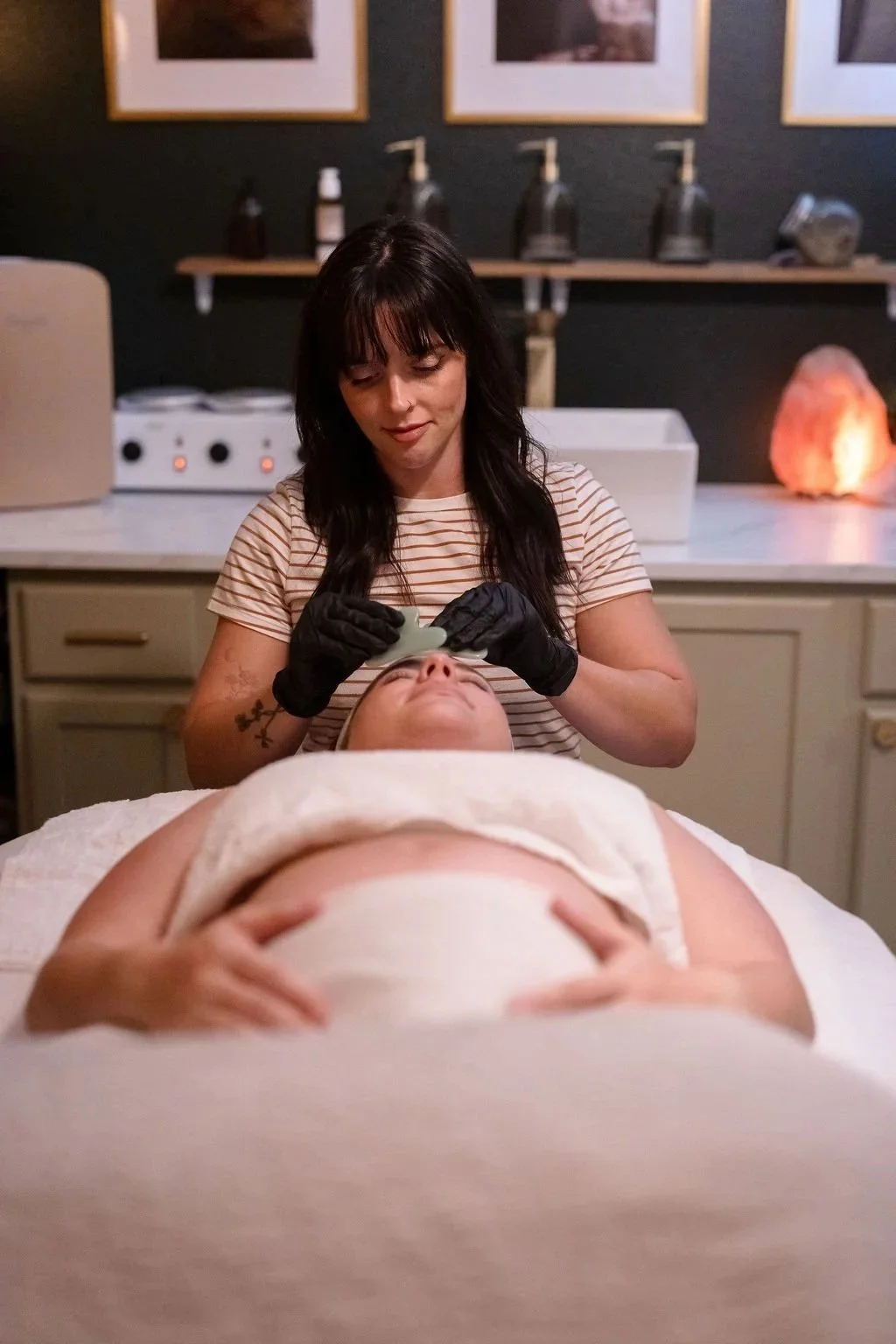 A gentle, glow-enhancing facial safe for all stages of pregnancy and postpartum. Includes herbal steam, dermaplaning, gua sha massage, and a custom mask to hydrate and calm hormonal skin. Infused with doshic-balancing botanicals to restore radiance and nervous system balance